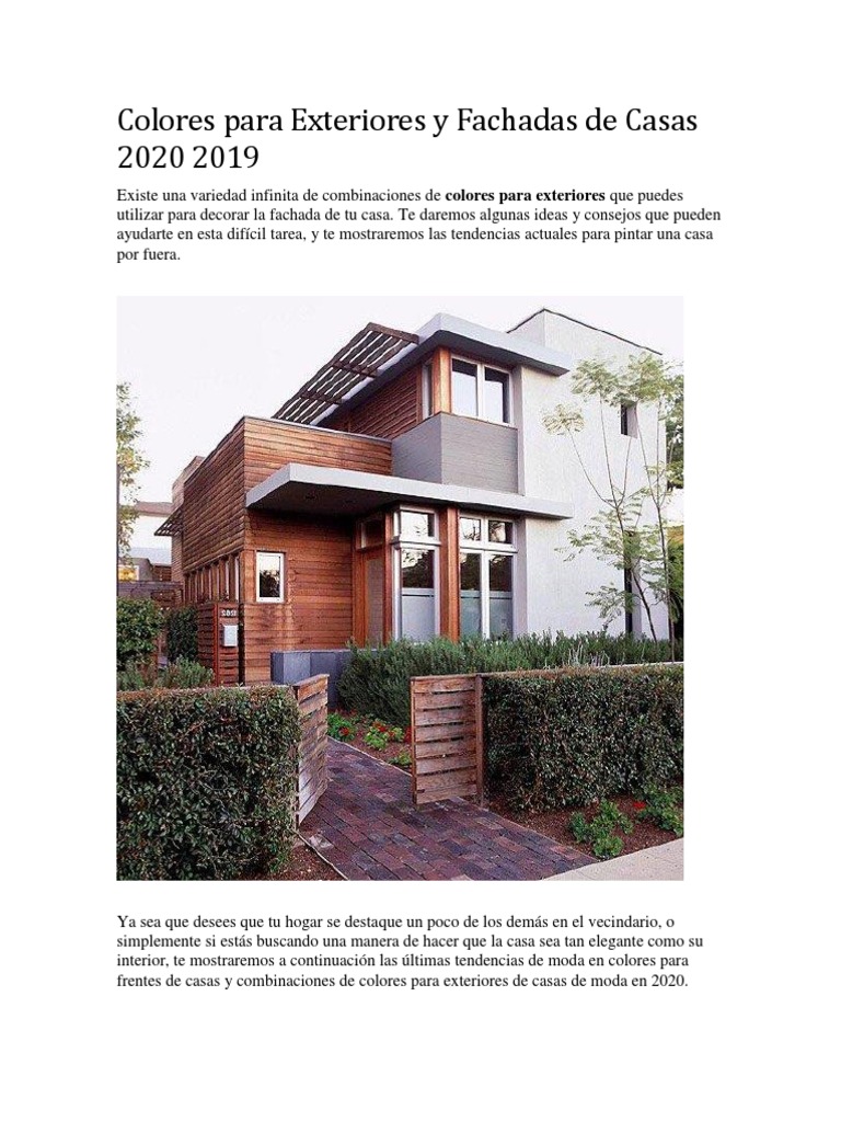Colores Para Exteriores Y Fachadas De Casas 2020 2019 Pdf